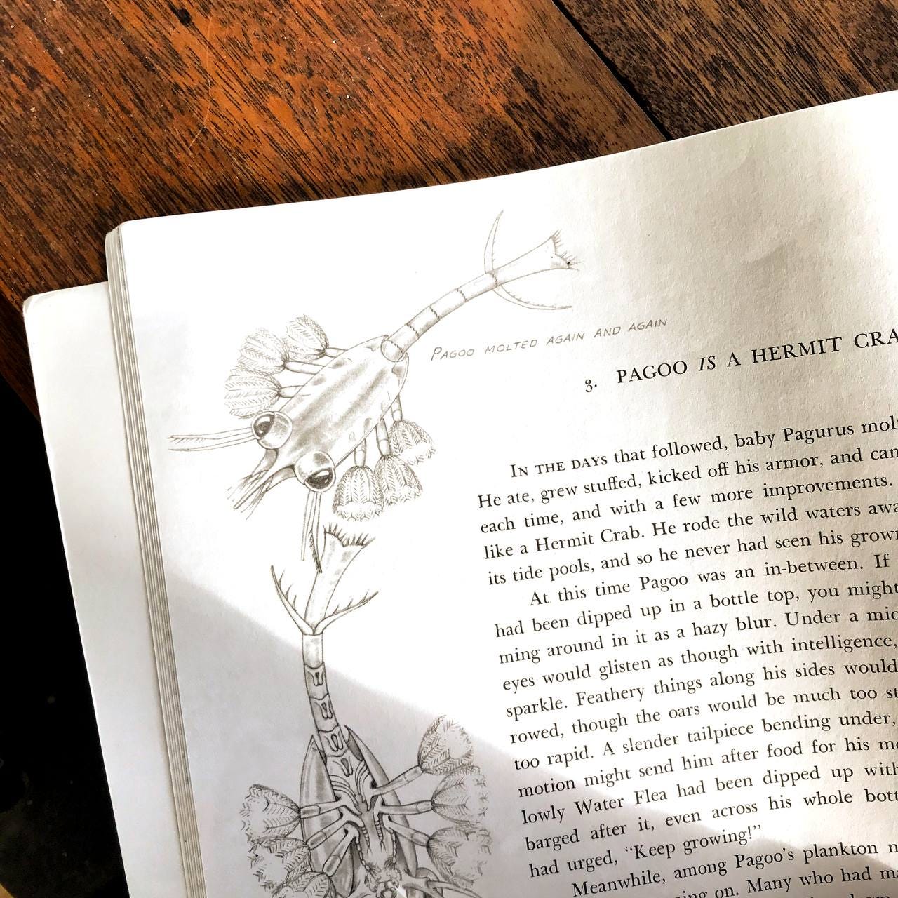 I was reading Pagoo to the kids a little while ago. It’s probably my fourth time through the book and it’s a good science read, about a hermit crab’s journey through life from microscopic speck through adulthood. Pagoo molts and changes several times, and some of those times he doesn’t even recognize himself because the changes are so drastic, and this section today struck me: