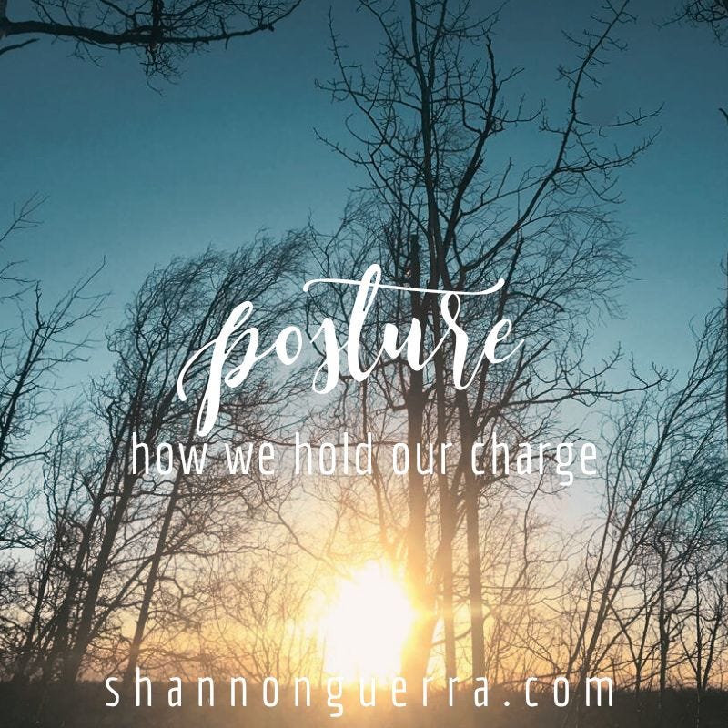 For the last few weeks, one of the main themes has been posture: how we are positioned to hold what we are charged to carry. Are we ready to receive, or to give? Are we attending, is our eye on the ball (hint: the ball is Jesus), or are we perpetually blindsided, looking the wrong way, focusing on the wrong things?